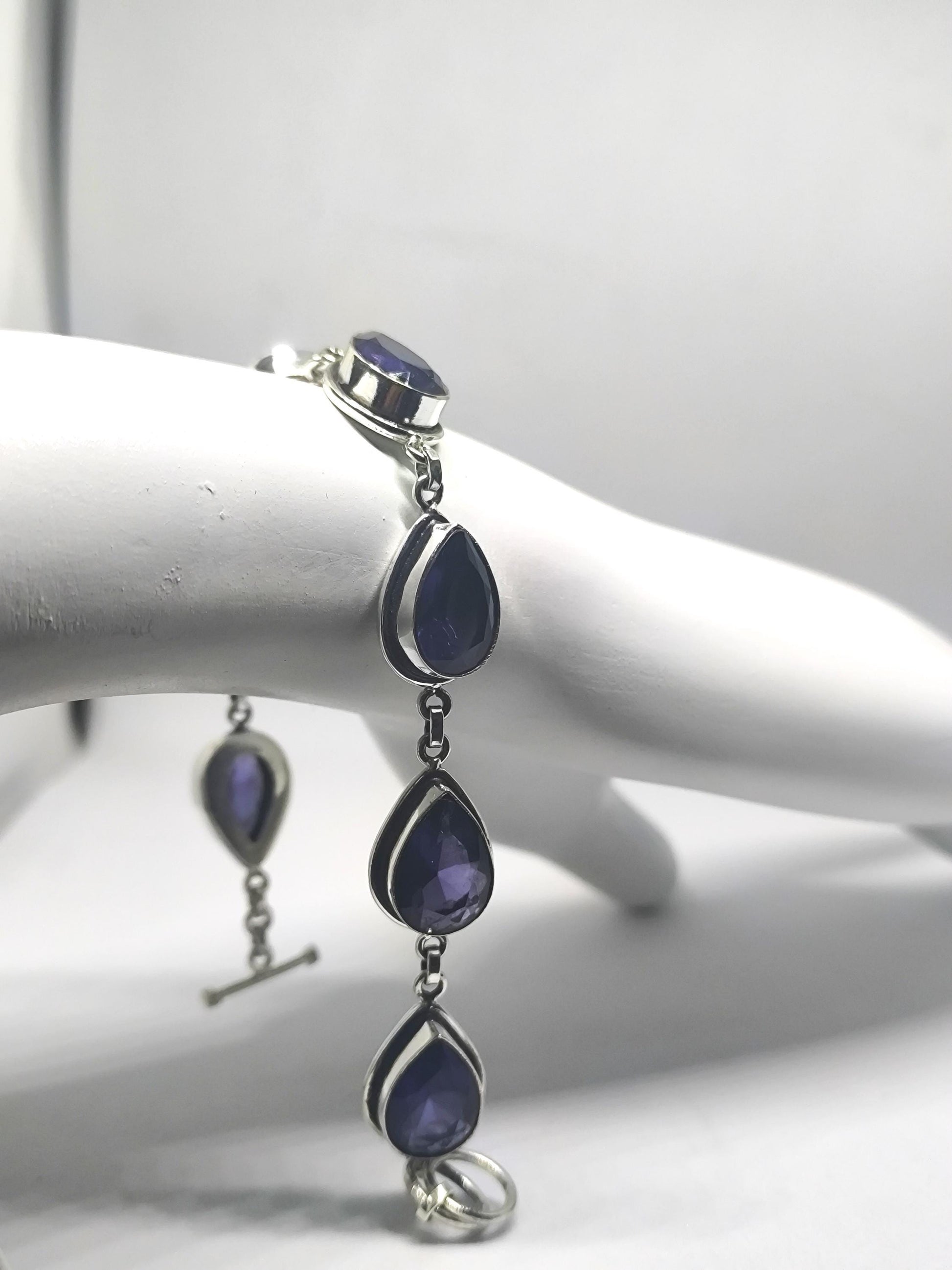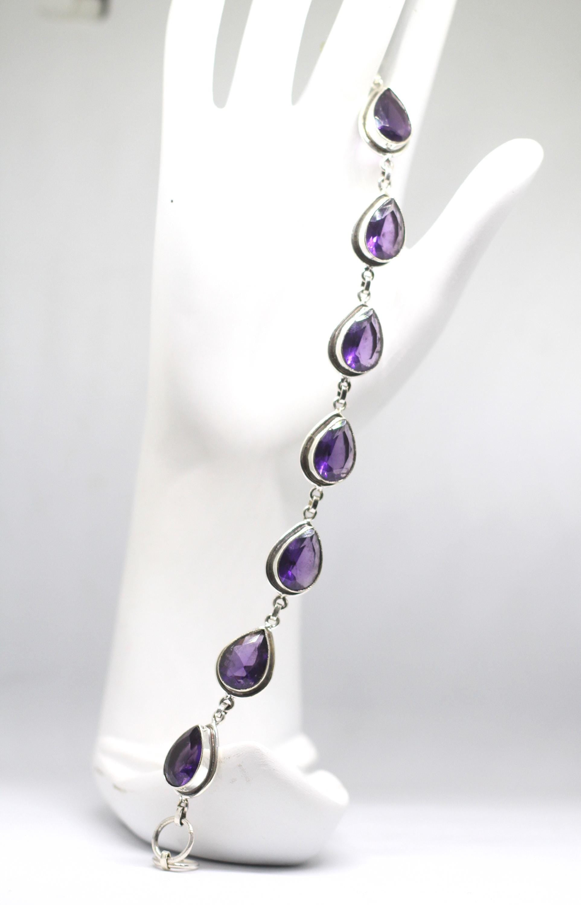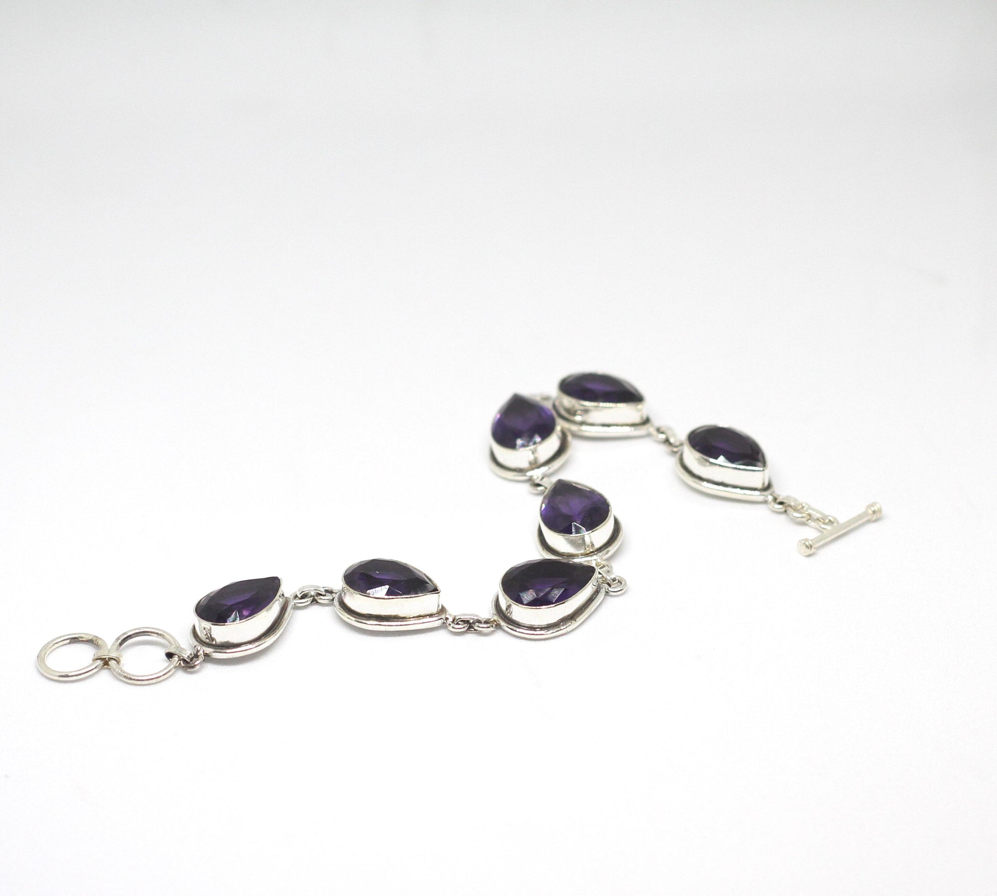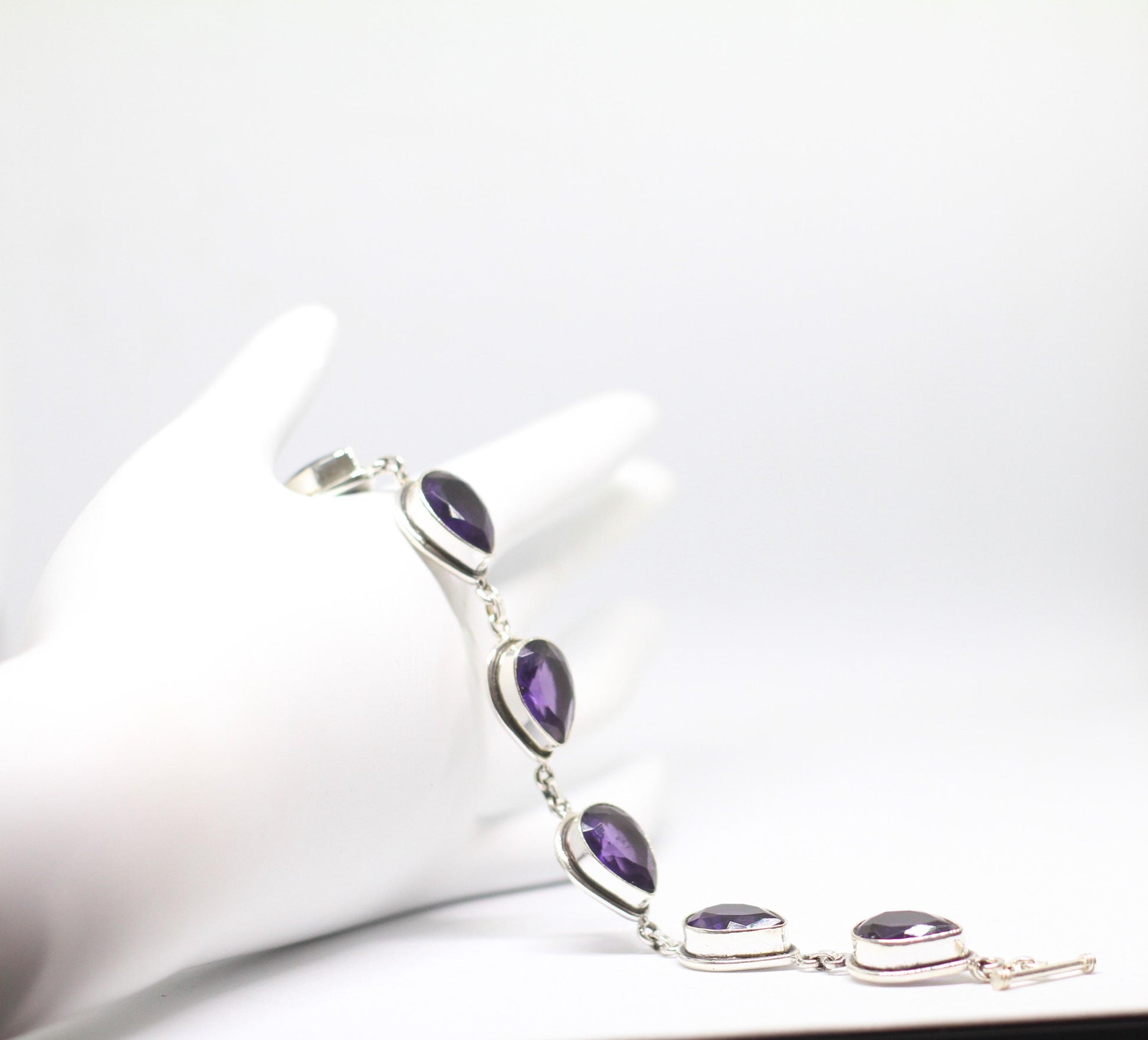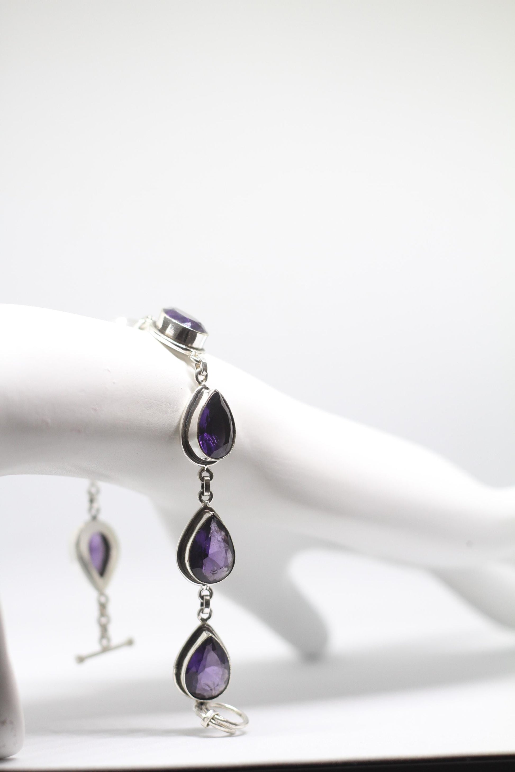 Handmade Amethyst Pear Bracelet Sterling Silver February Birthstone Purple Gemstone Jewelry Gift for Her