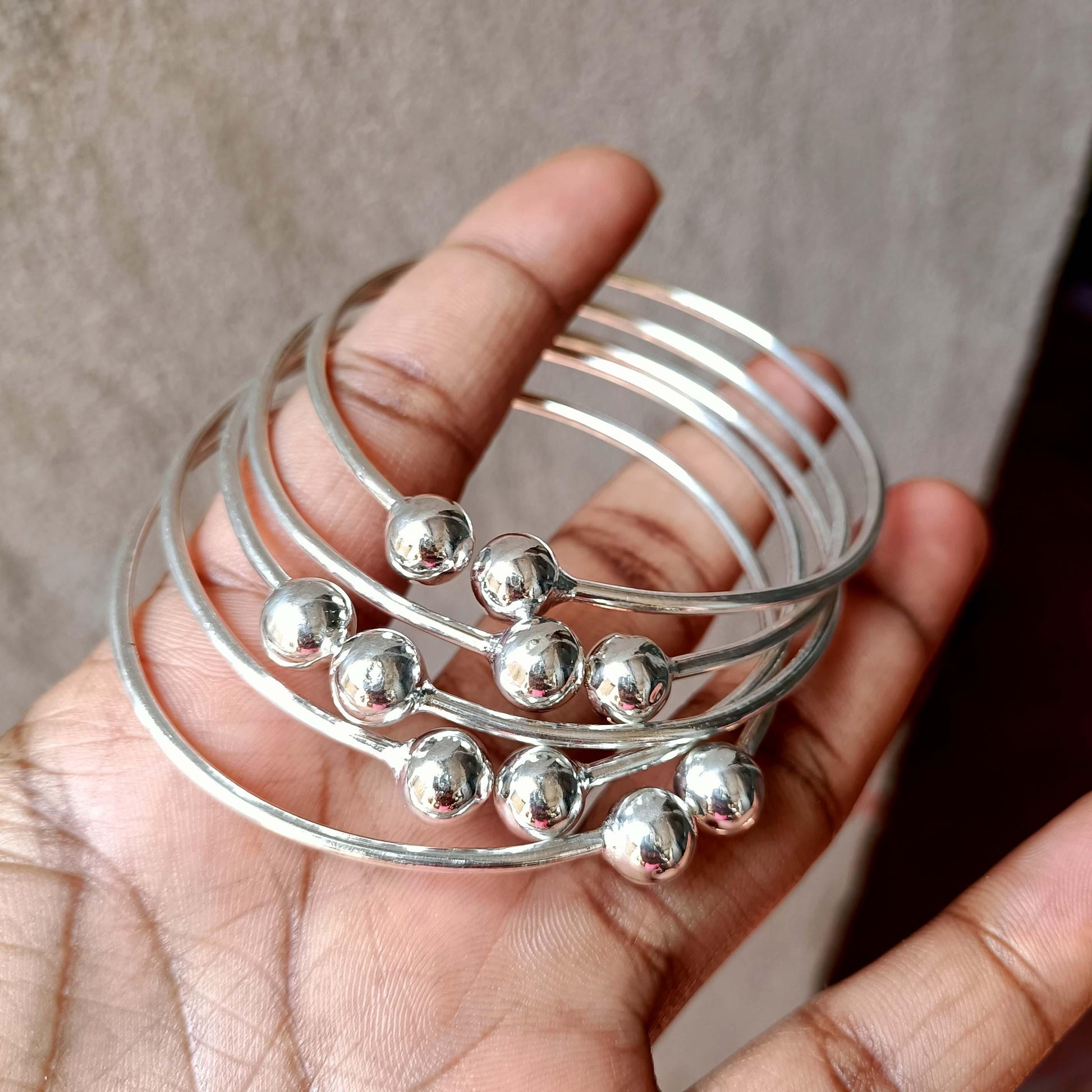 Elevate your everyday style with our Minimalist Silver Ball Bangle Set, handcrafted from high-quality sterling silver. Featuring sleek, polished spheres on a smooth, adjustable band, these bangles are perfect for stacking or wearing solo.