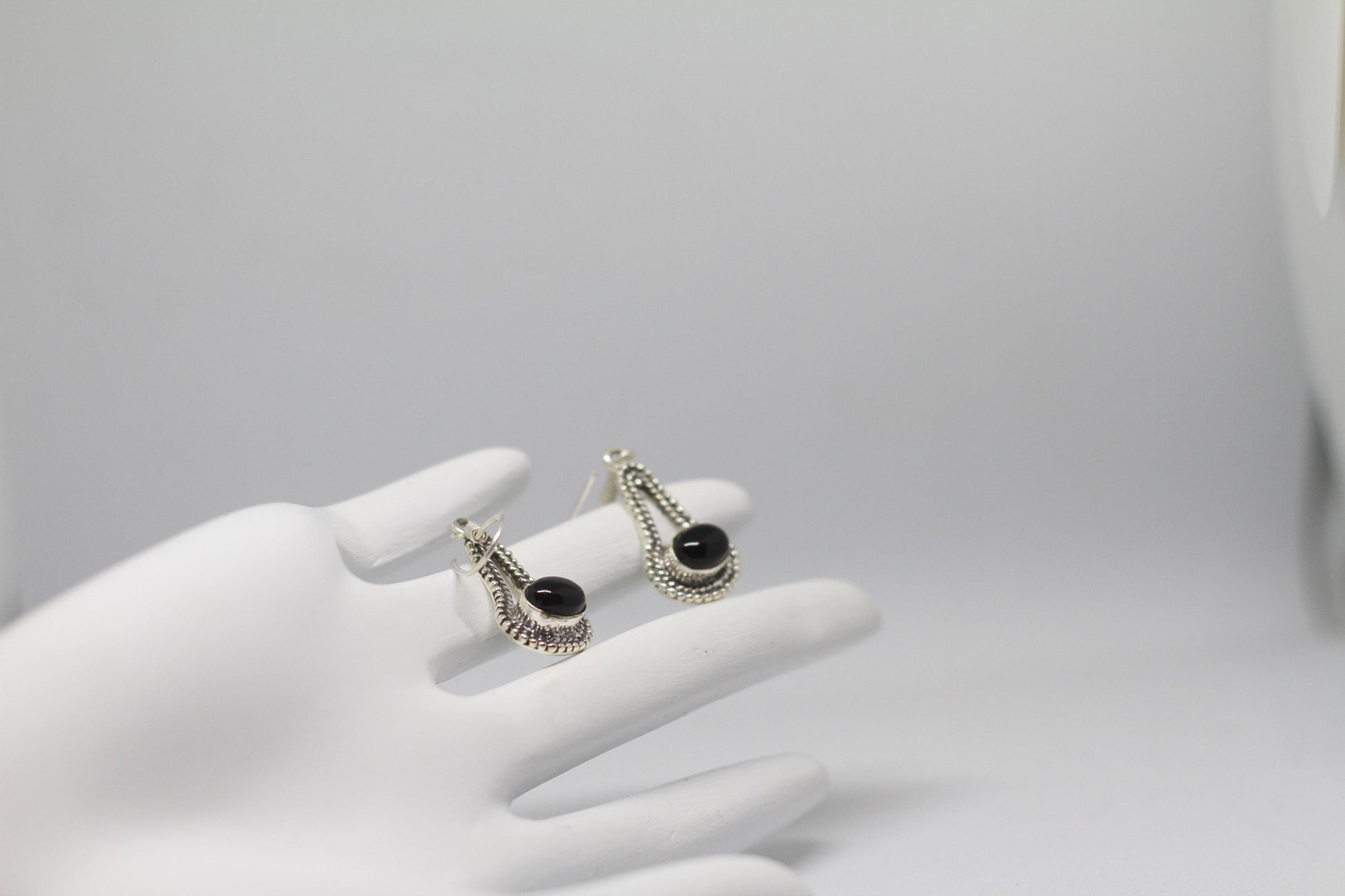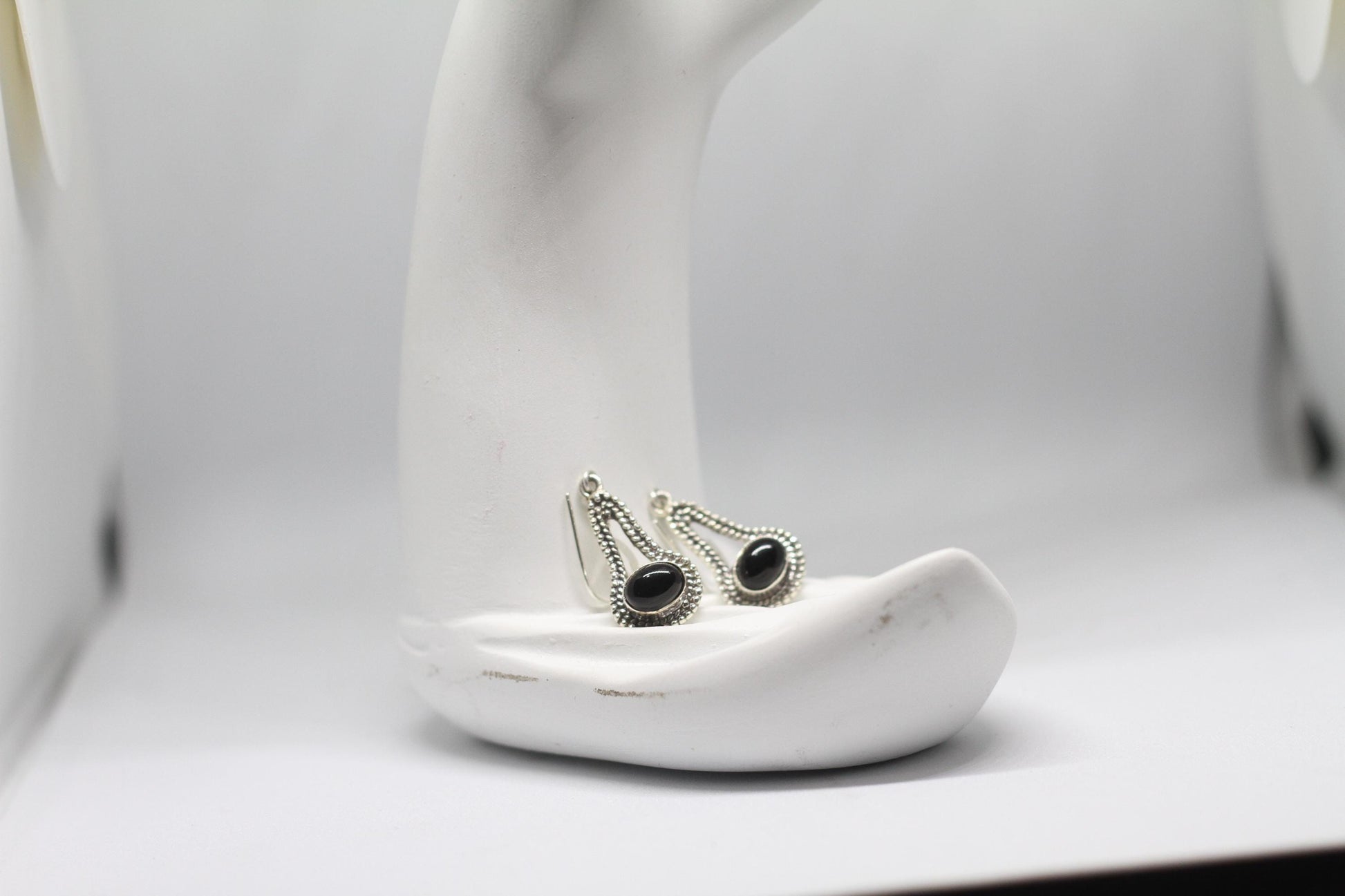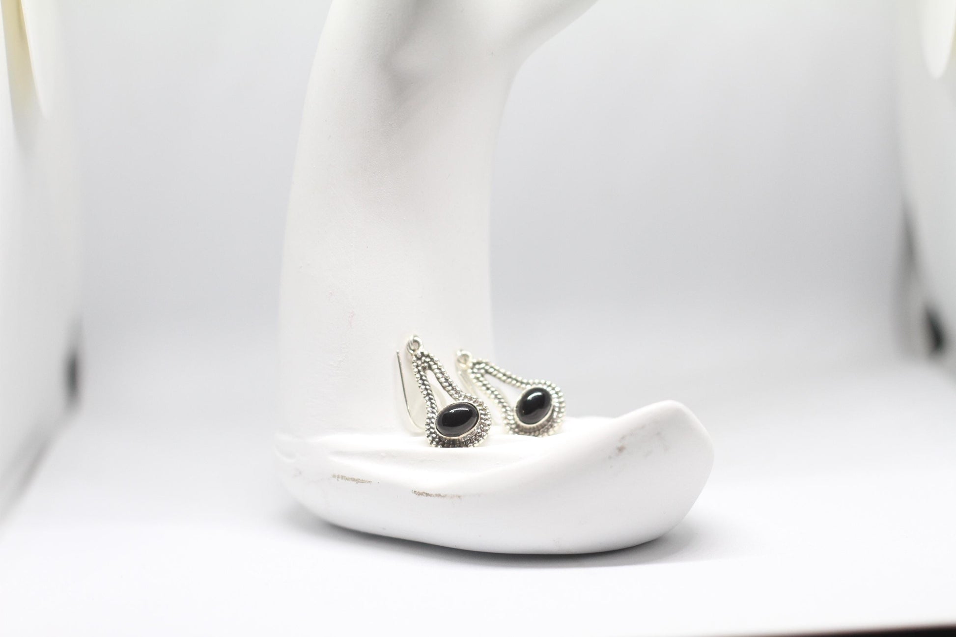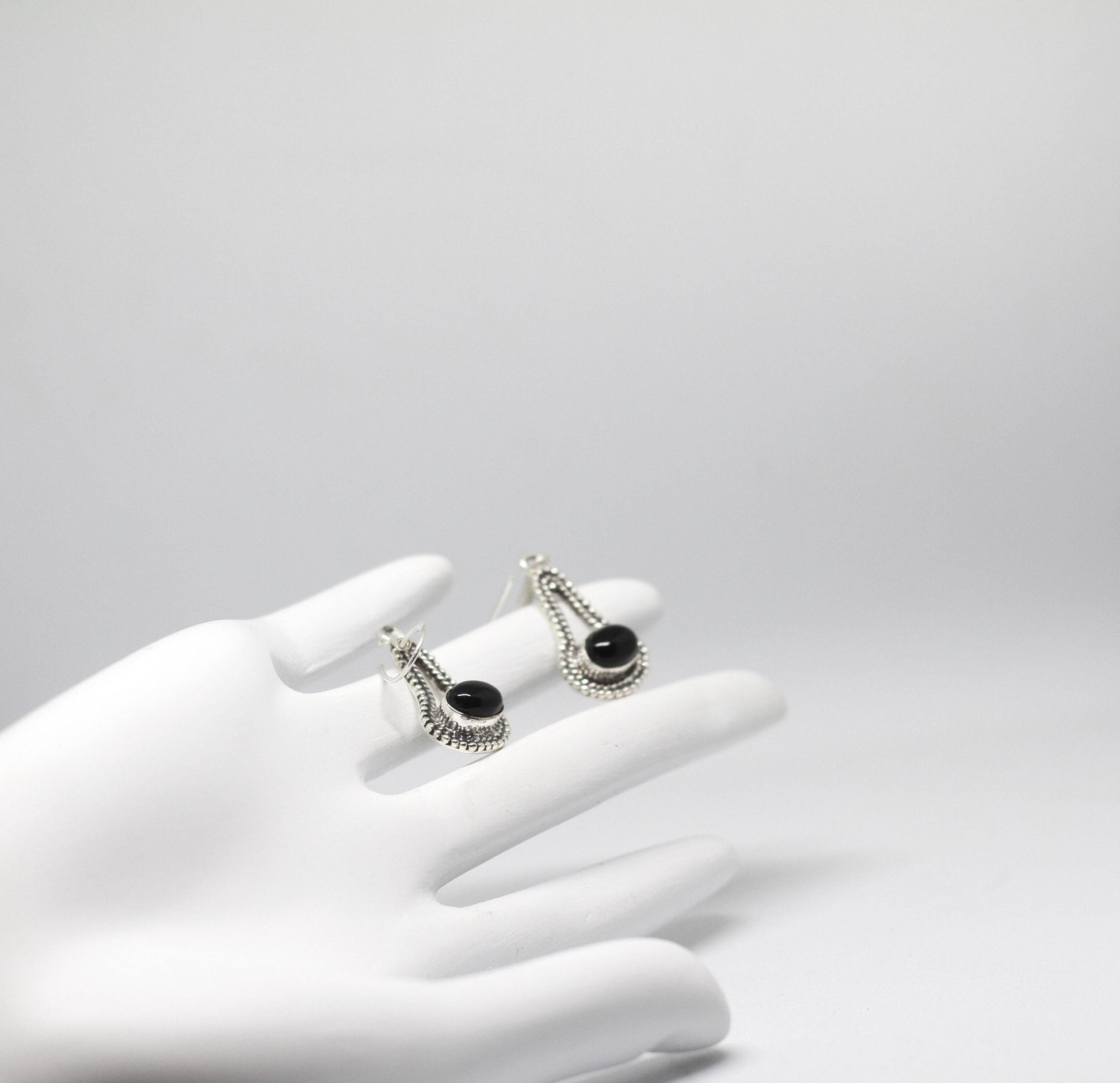 These earrings are perfect for adding a touch of bohemian flair to any outfit. The dark onyx stone adds a touch of elegance and mystery, while the silver beads and intricate design create a sense of bohemian chic.