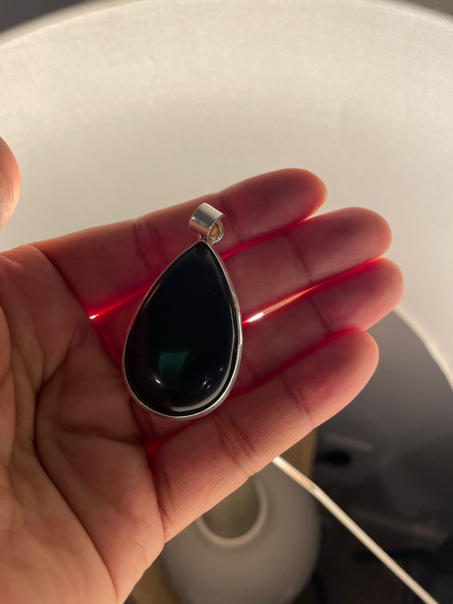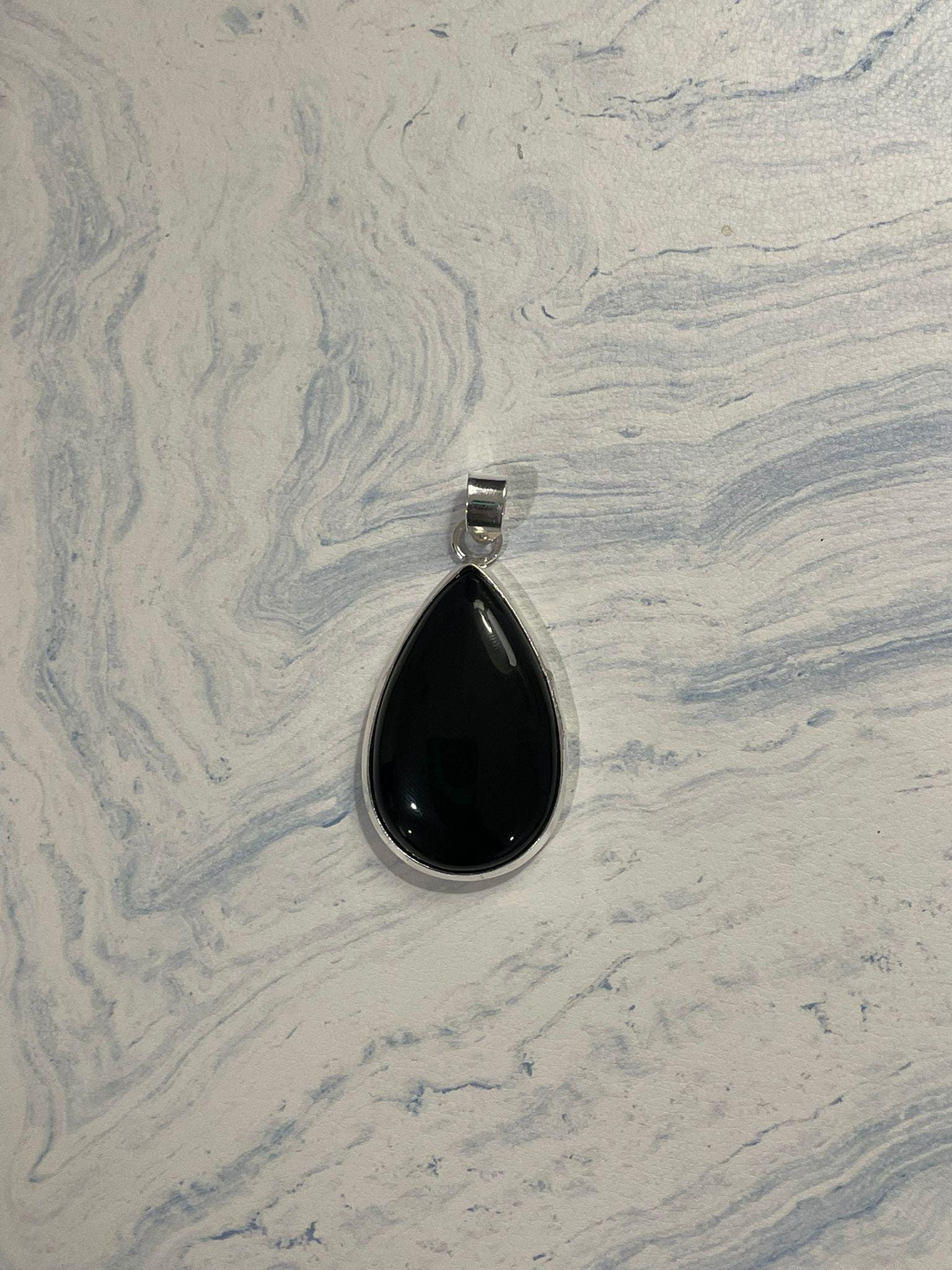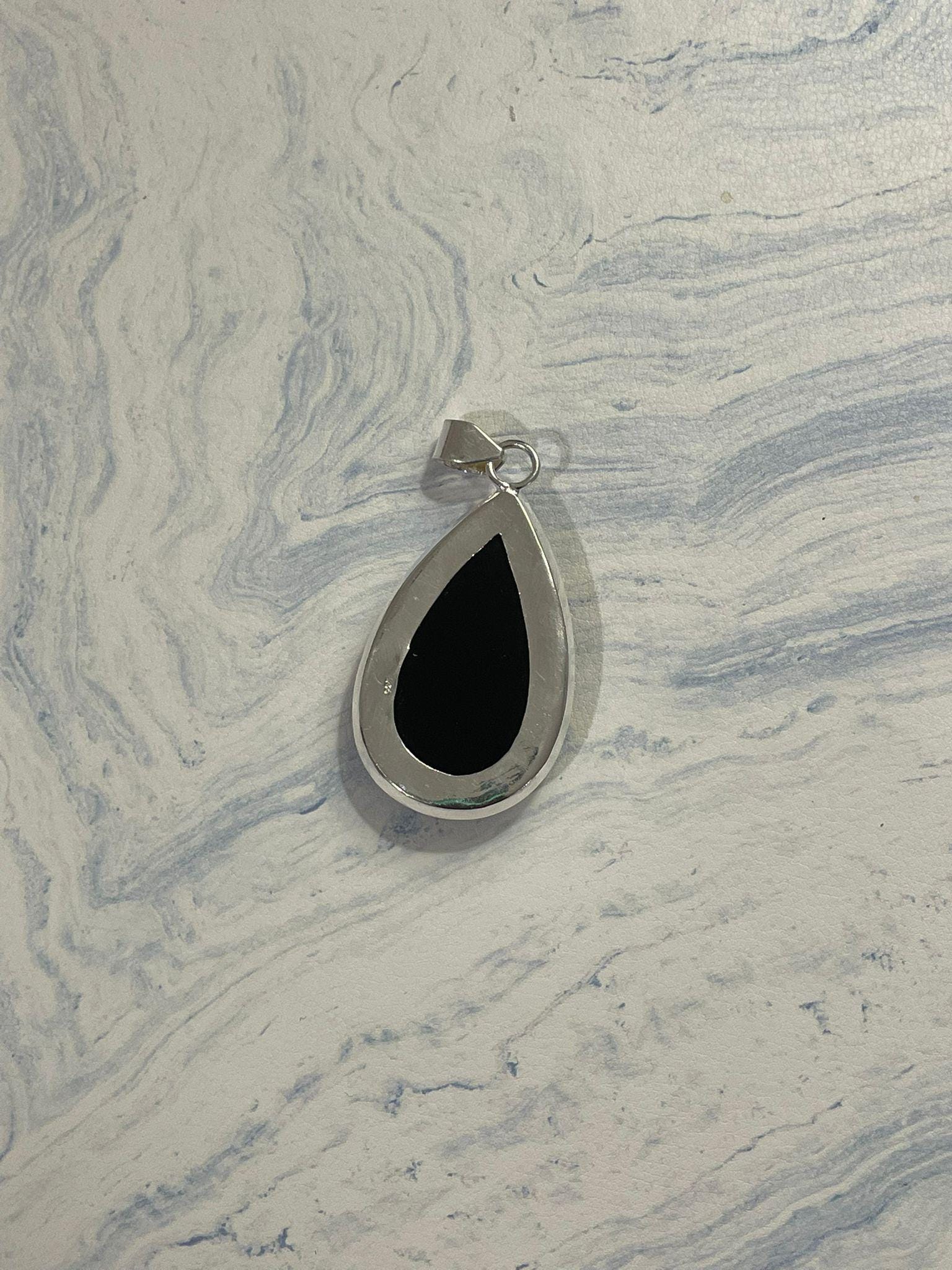 This 24*39 mm exquisite piece features a large, faceted black onyx stone, known for its deep, rich color and its association with strength and grounding. The stone is set in a simple yet elegant silver bezel, creating a classic look that is perfect for any occasion.