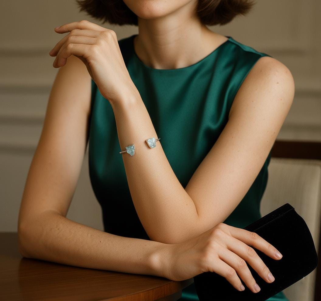 Aquamarine, also known as the stone of courage and serenity, is cherished for its calming and balancing energies. Believed to inspire clarity, harmony, and emotional healing, aquamarine makes this bangle not only a stylish accessory but also a meaningful spiritual piece.