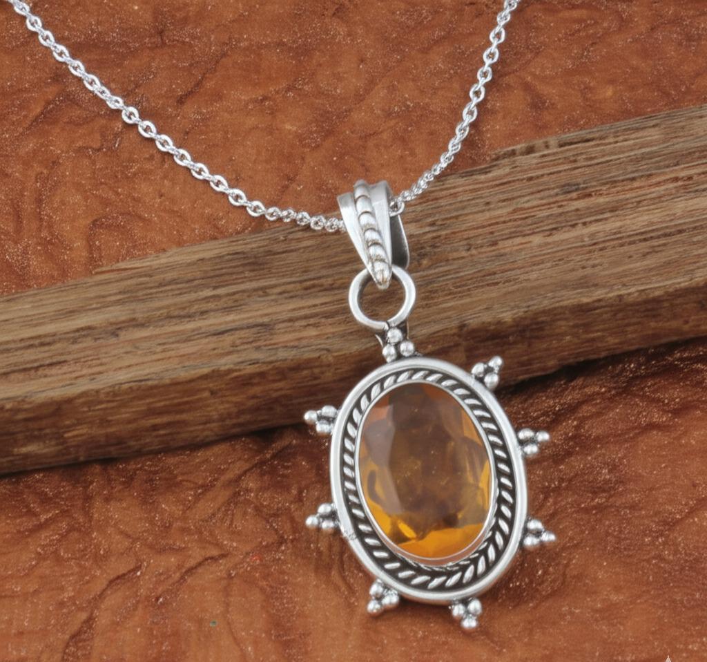 Handcrafted Citrine Sterling Silver Pendant with Ornate Accents