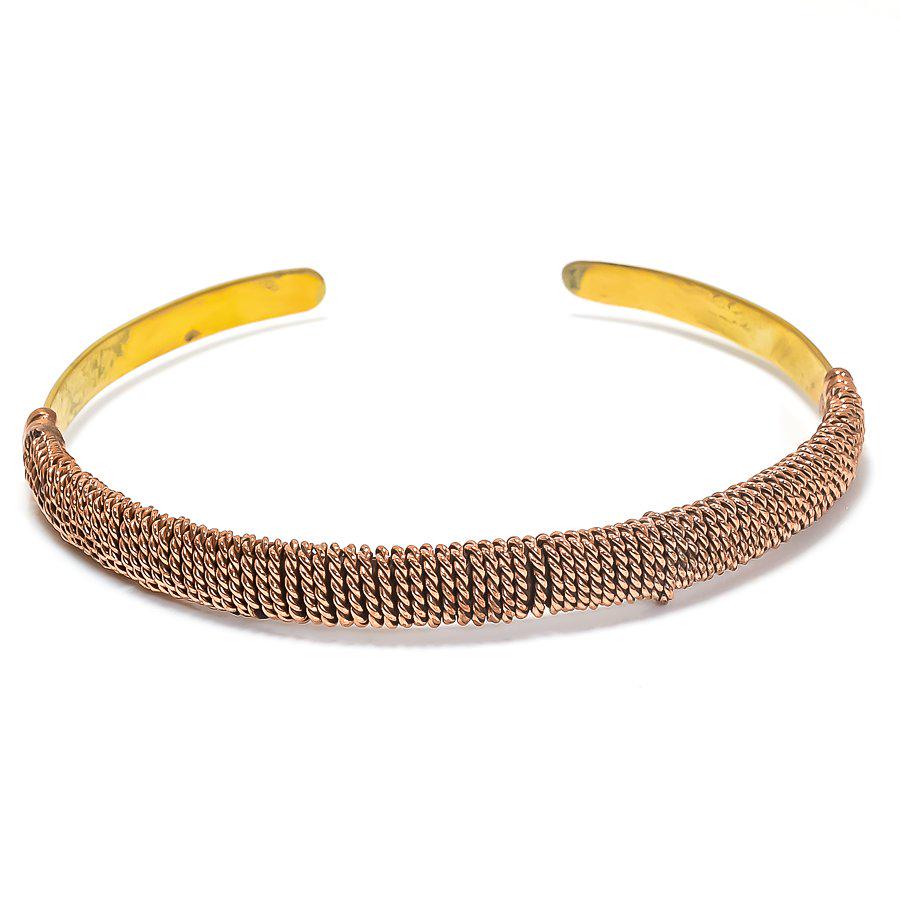 This unique bracelet features a twisted wire design that resembles a rope or cord. The main body of the bracelet appears to be made of a gold-toned metal, while the twisted wire section has a slightly different color, perhaps a darker shade of gold or a different metal altogether. The bracelet has a simple, understated design that is both elegant and versatile.