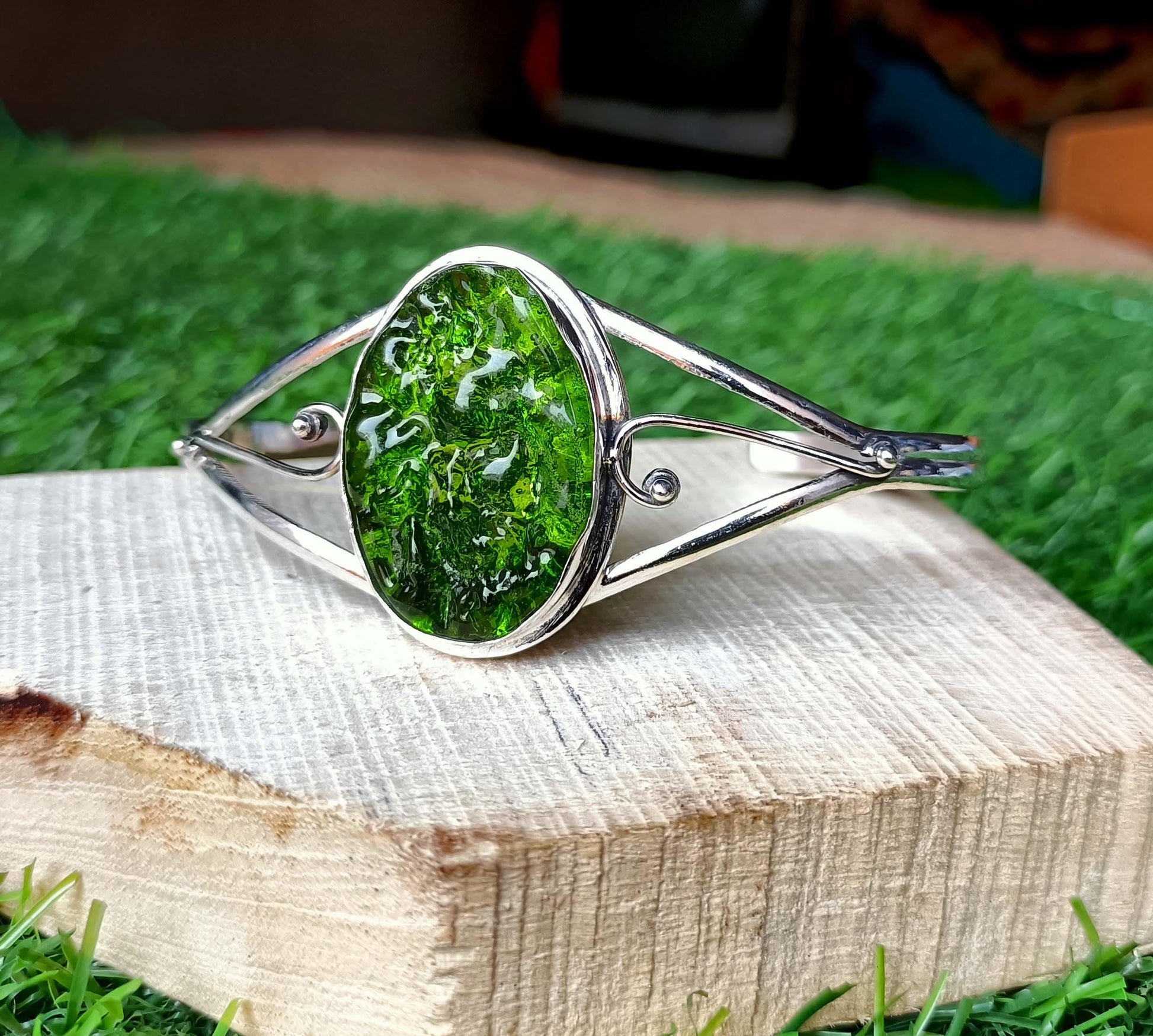Moldavite Bangle, Handmade Bangle, Women Bangle, Gemstone Bangle, Moldavite Jewelry, 925 Silver Bangle, Dainty Bangle, Cuff Bangle