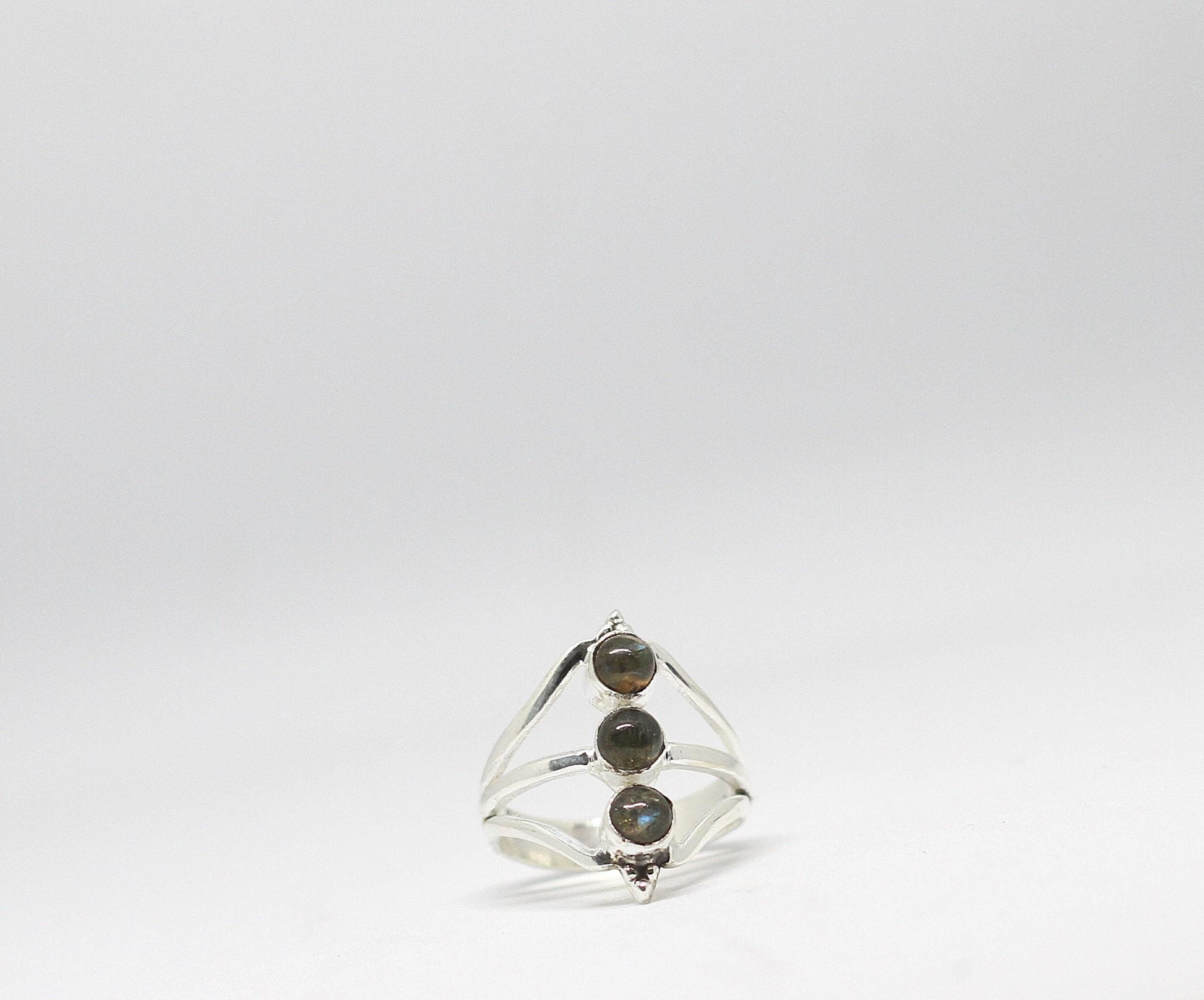 Gemstones: The ring features four oval-shaped obsidian gemstones set in a vertical line. Obsidian is a naturally occurring volcanic glass, known for its deep black color and glassy luster. It is often associated with protection, grounding, and strength.