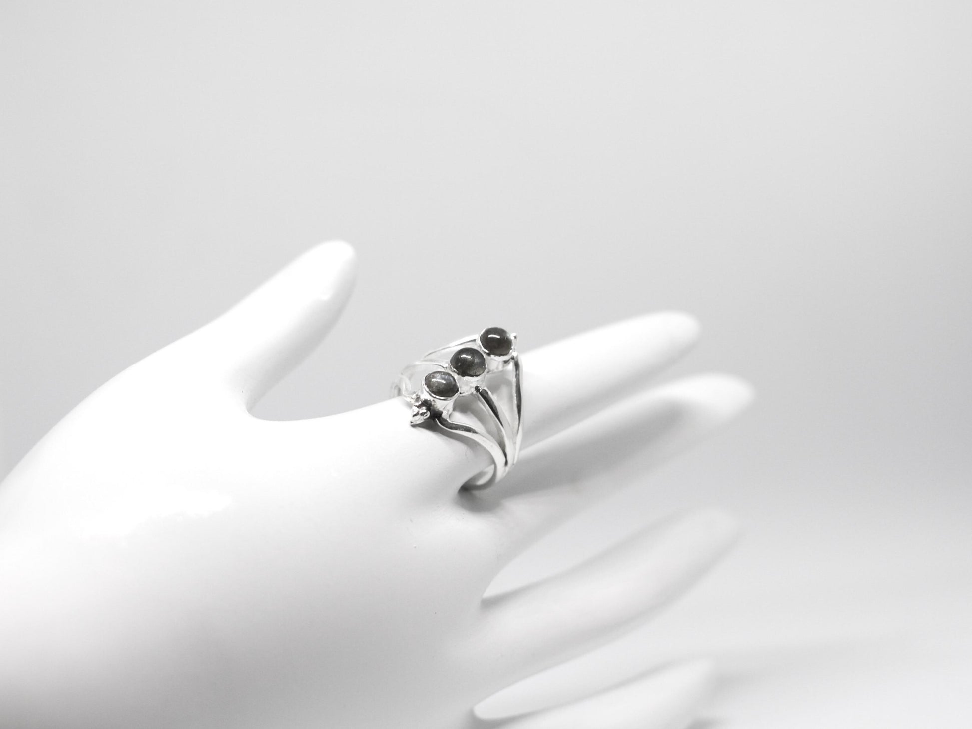 Style: The ring's style can be described as contemporary and minimalist. The clean lines, simple design, and use of dark obsidian gemstones give it a modern and edgy appeal.