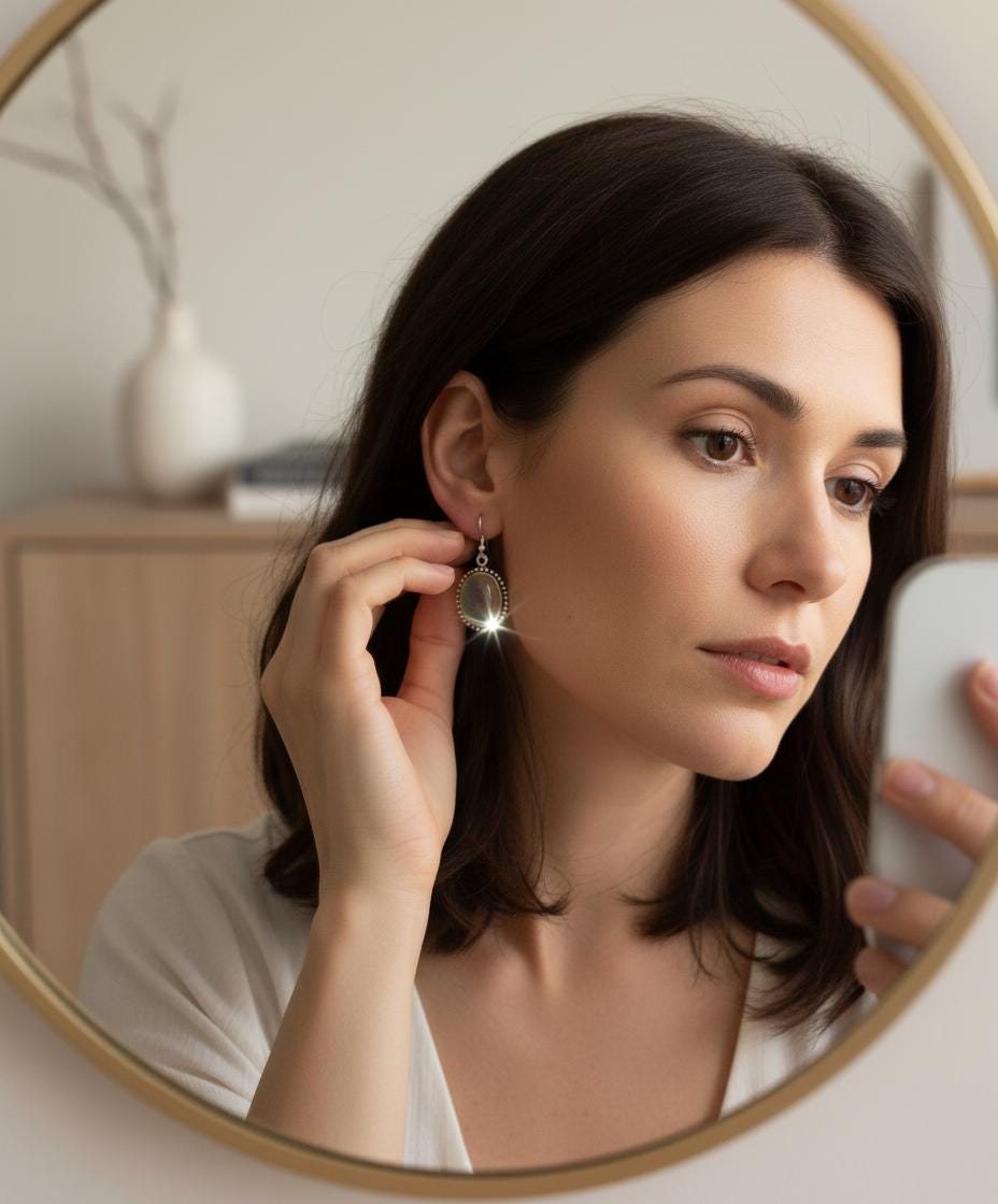Elegant Design: The classic oval shape and silver setting create a timeless look.