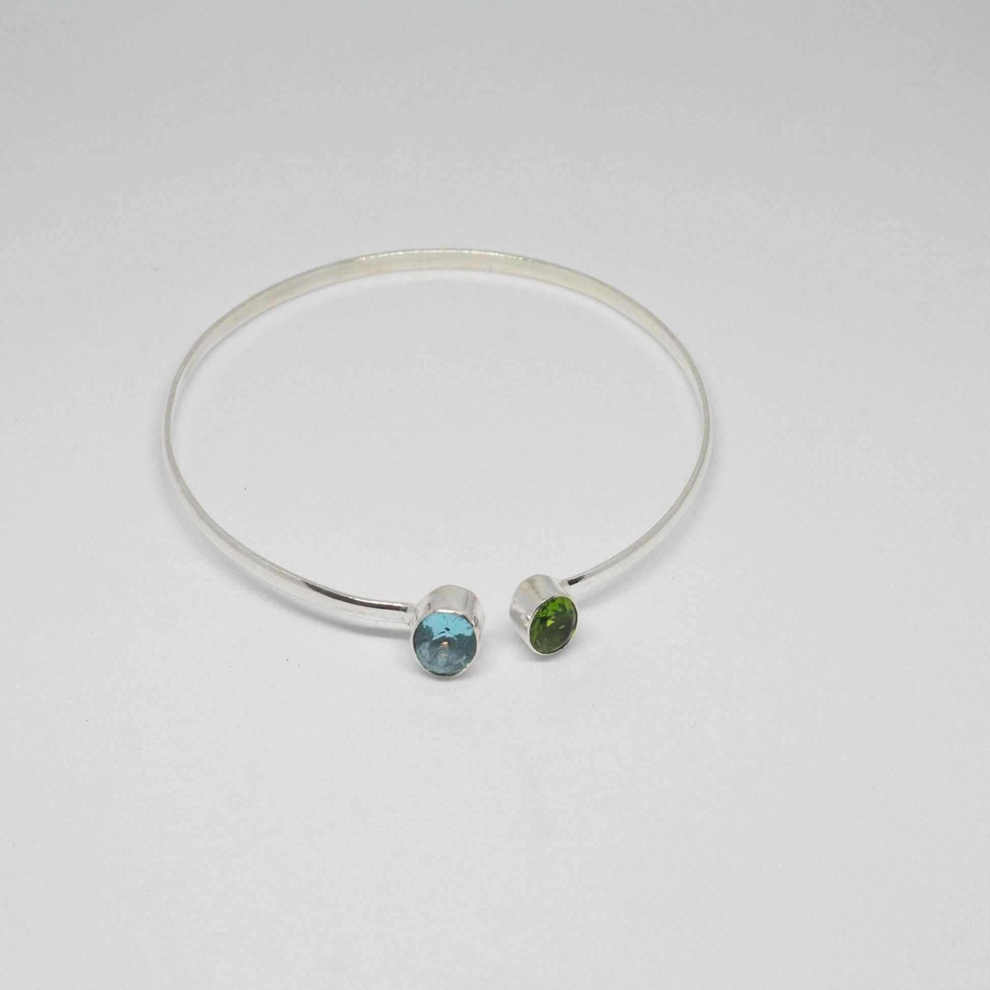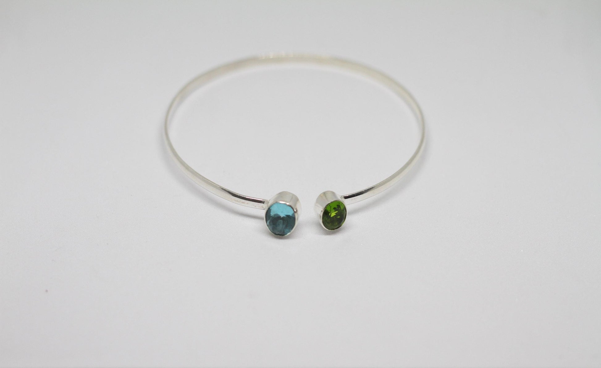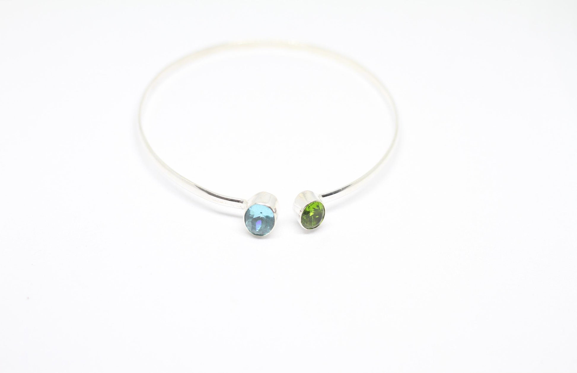 Sterling Silver Bangle |Peridot Bangle |Blue topaz Bangle| 2 stone Bangle | Unique Bangle | Gemstone Bangle |Dainty Bangle | Handmade Bangle